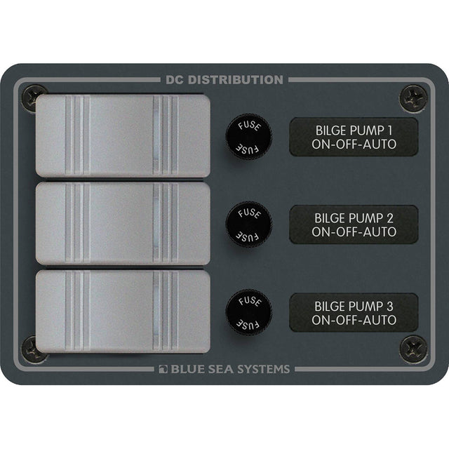 Panel de control de bomba de sentina de 12/24 voltios CC resistente al agua de Blue Sea Systems con interruptor basculante Contura y portafusibles para fusibles de hasta 20 amperios