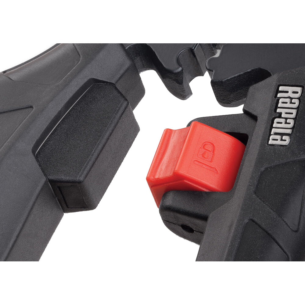 Los alicates Rapala® Elite están armados con Cerakote®, que es un recubrimiento liviano de alto rendimiento que protege contra la abrasión, la corrosión y los rayos UV. "Mag Spring" mantiene las mandíbulas abiertas y listas, activa el interruptor y "Mag Lock" asegura firmemente las mandíbulas para un almacenamiento seguro. Las mandíbulas híbridas tienen dientes frontales entrelazados que aseguran un cierre hermético en los ganchos. El área plana en la parte posterior está diseñada para sujetar líneas y líderes y los cortadores de carburo son reemplazables y cortarán todas las líneas trenzadas, monofilamento y fluorocarbono junto con cables livianos de hasta 15 libras.