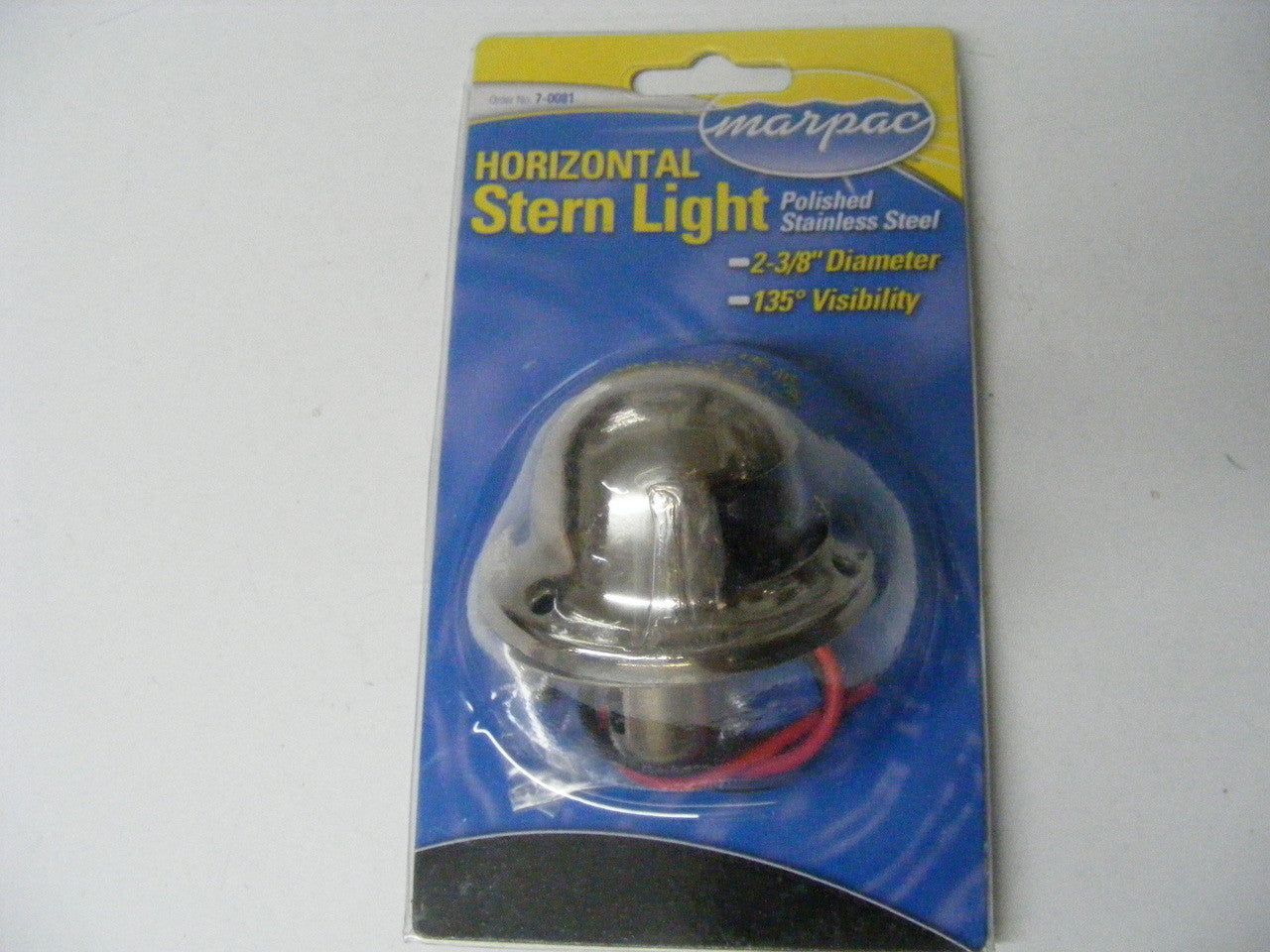 BRAND: Marpac DESCRIPTION: Stern Light FEATURES & ATRIBUTES:: - Polished stainless steel top. - Diameter 2-3/8. - 135° Visibility. - #90 12 volt bulbs included. - Use Marpac order 7-3936 or 7-7200 (LED) for bulb replacement. Manufacturer PN: LT011030 Internal Code: 7-0081 Need more info? Ask a question. We will answer questions in a matter of minutes.