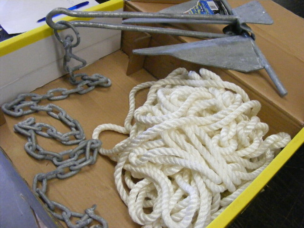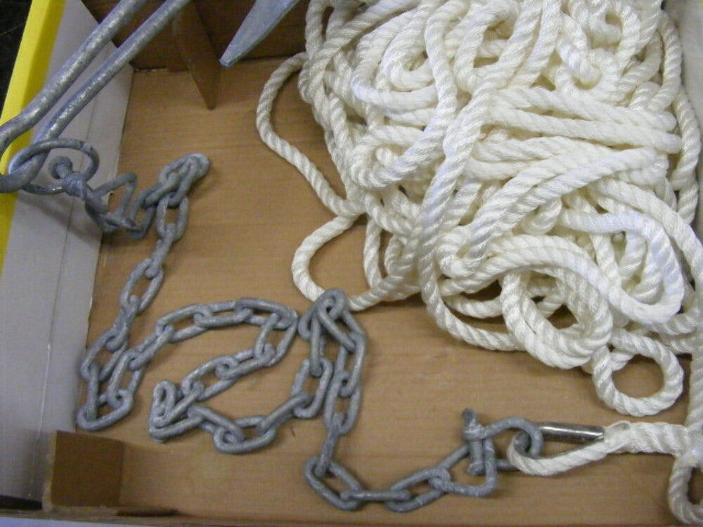 BRAND: Marpac DESCRIPTION: - Poseidon Slip-Ring Anchor 10 lbs KIT with Rope Chain - Boat 20' to 24' INCLUDED IN PACKAGE: - #10 lbs Slip-Ring Anchor, - 3/8" x 100' Twisted Nylon Anchor Rope, - 1/4" x 4' Anchor Lead Chain with oversized end links for easy attachment and - Two 5/16" Screw Pin Anchor Shackles. FEATURES & ATRIBUTES: - Excellent for light duty conditions. - Everything needed is included. - Anchor, Lead chain and shackles are all Hot dipped galvanized. - Anchor Lead chain Resists chafing on rough bottom. - Twisted nylon anchor rope is: Highly resistant to abrasion, oil, grease, gasoline and marine growth. - Can be stowed wet without damage to the fibers. - Superior in strength and flexibility. - Slip-ring design allows easy retrieval in snagging conditions. Manufacturer Part Number: 50994 Internal Code: 7-2303 Returns IN NEW ITEMS accepted in 30 days"""ONLY""" if they have NOT being installed and are in similar condition as when they were shipped. If you missed parts of the item, item CANNOT be returned. Need more info? Ask a question. We will answer questions in a matter of minutes