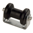 Este conjunto de rodillos soporta la quilla de su embarcación para facilitar la carga y transportarlo de forma segura en su remolque. Cuenta con un rodillo de carrete de caucho negro de 4" y un soporte de acero galvanizado que se fija a la lengüeta del remolque. Lengüeta del remolque de 2 a 2-1/2".