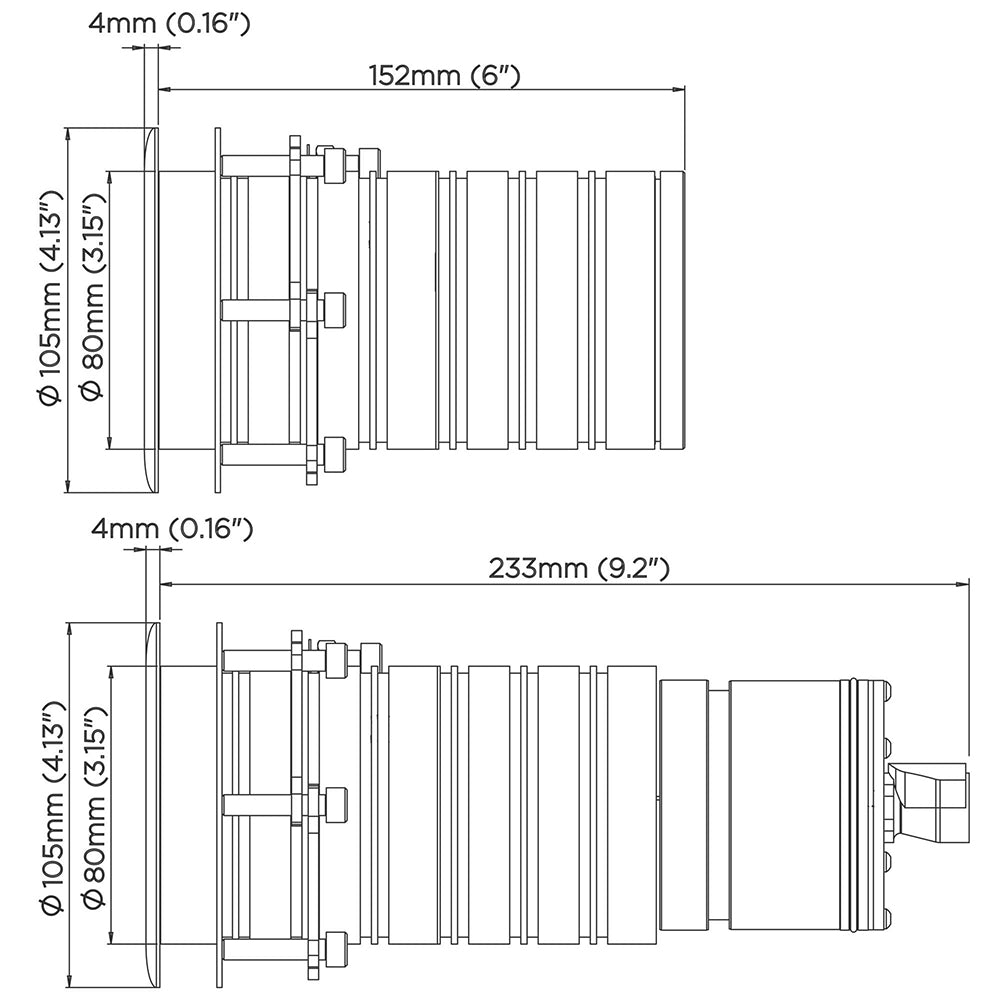 La cara exterior de perfil ultrabajo de la carcasa está diseñada para embarcaciones que desean ir rápido y no tener impacto en la velocidad o el flujo de agua sobre el casco, perfecta para los costados o superficies de carrera.