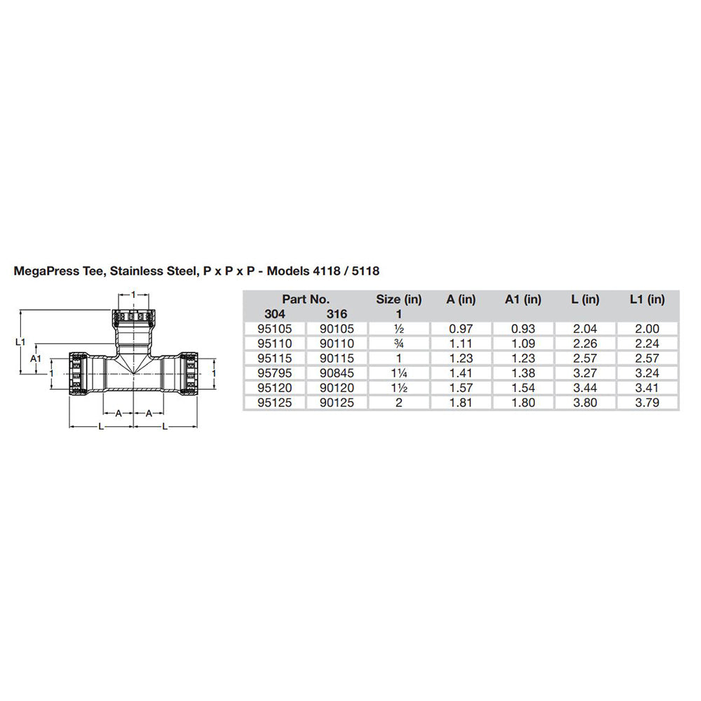 Viega MegaPress T de acero inoxidable 304 de 1" - Conexión de triple prensa - Tecnología Smart Connect [95115] está agotado y se enviará tan pronto como vuelva a estar disponible.